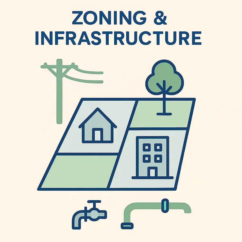 Zoning dictates dollars. Commercial and residential-zoned parcels fetch far more than agricultural land. And existing utilities are a massive value-add, saving buyers $15,000-50,000+ in infrastructure costs money they'll happily factor into their offer.